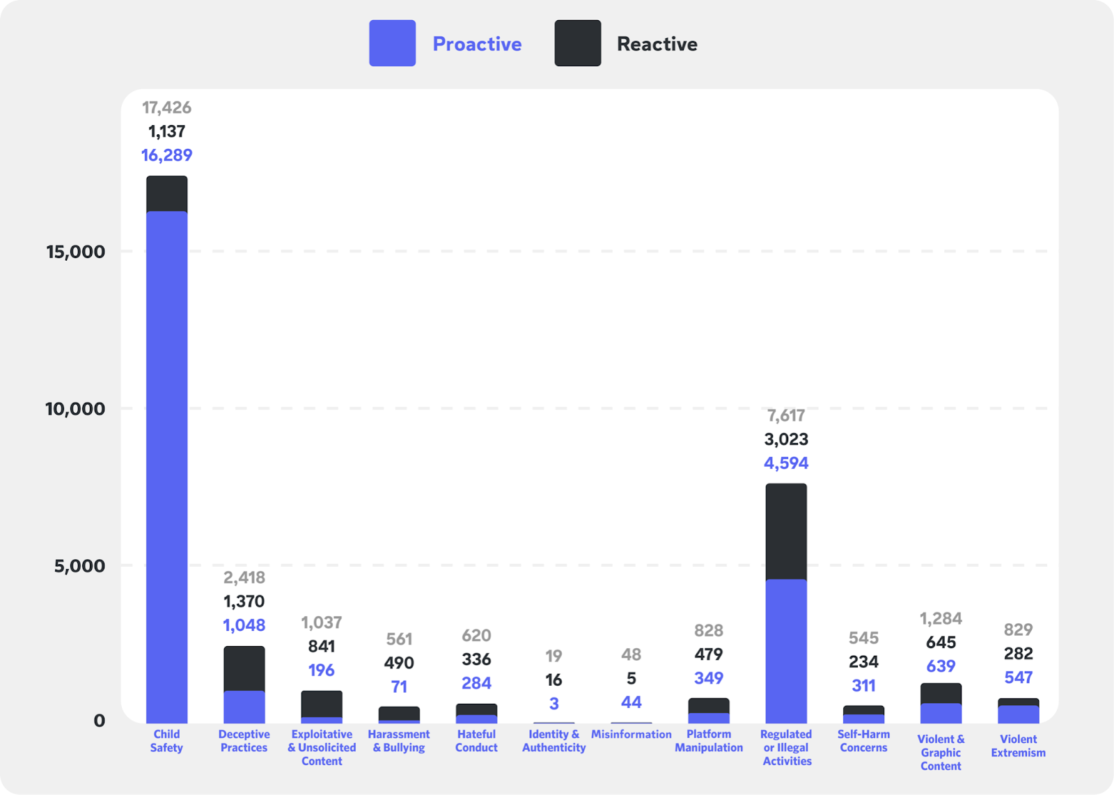 Our investment and prioritization in Child Safety has never been more robust. We were able to remove servers hosting CSAM content proactively 99% of the time. Removing CSAM content is one of our top priorities, and we are proud of the cross-functional efforts that have enabled us to achieve this proactive takedown rate for CSAM.