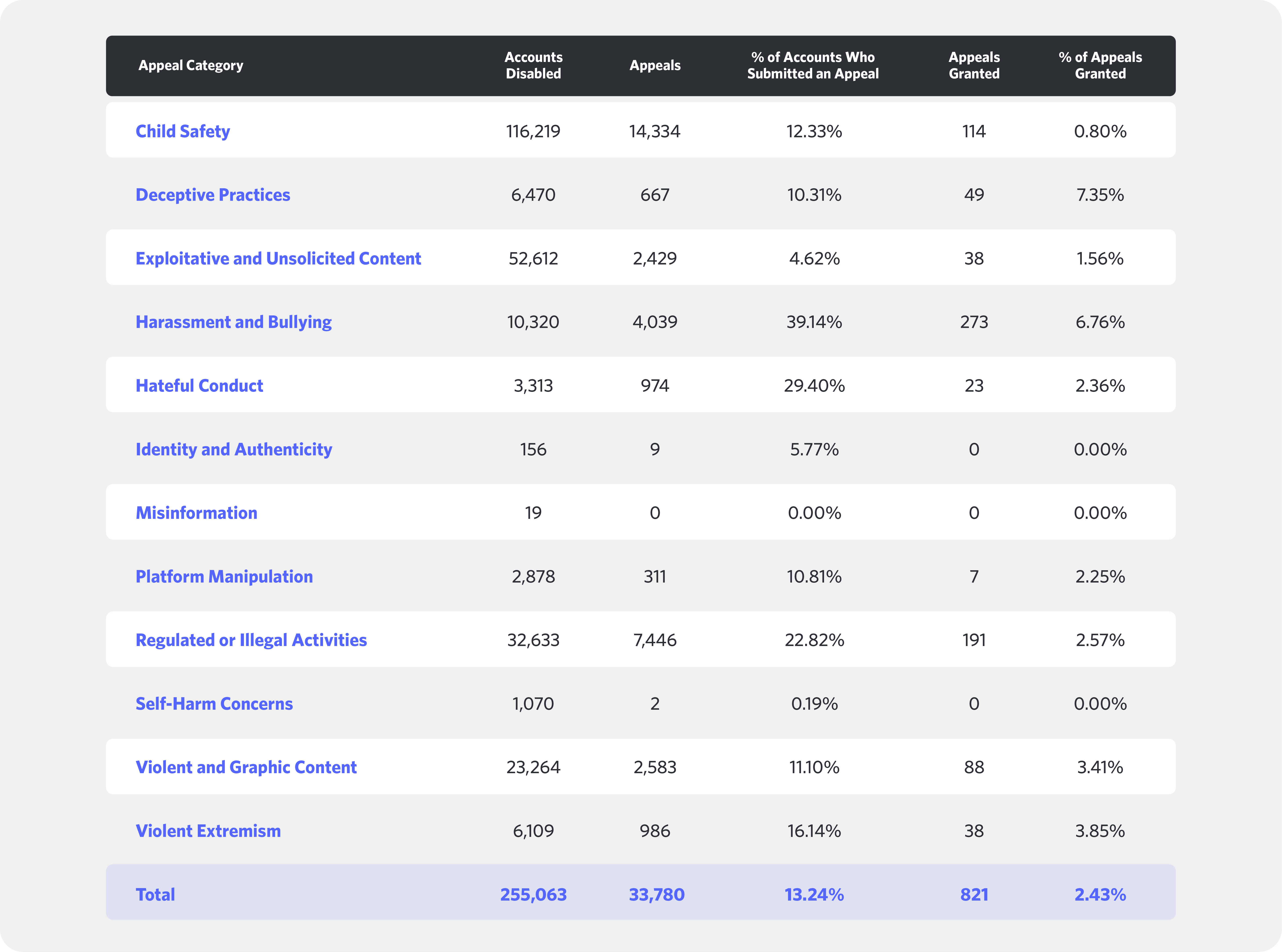 During the fourth quarter of 2023, 23,264 accounts and 2,232 servers were removed for Violent and Graphic Content. We proactively removed servers for these issues 96% of the time, an increase from 92% in the previous quarter.