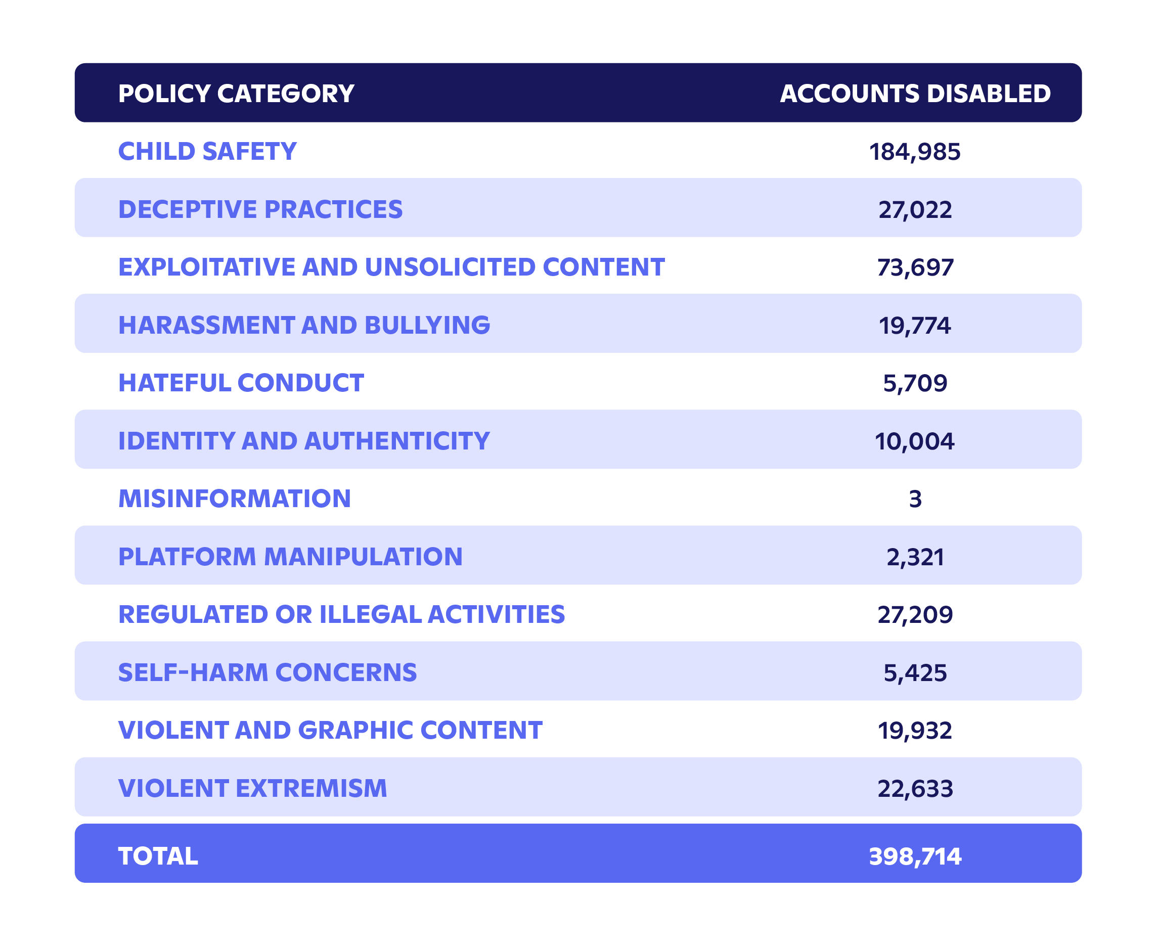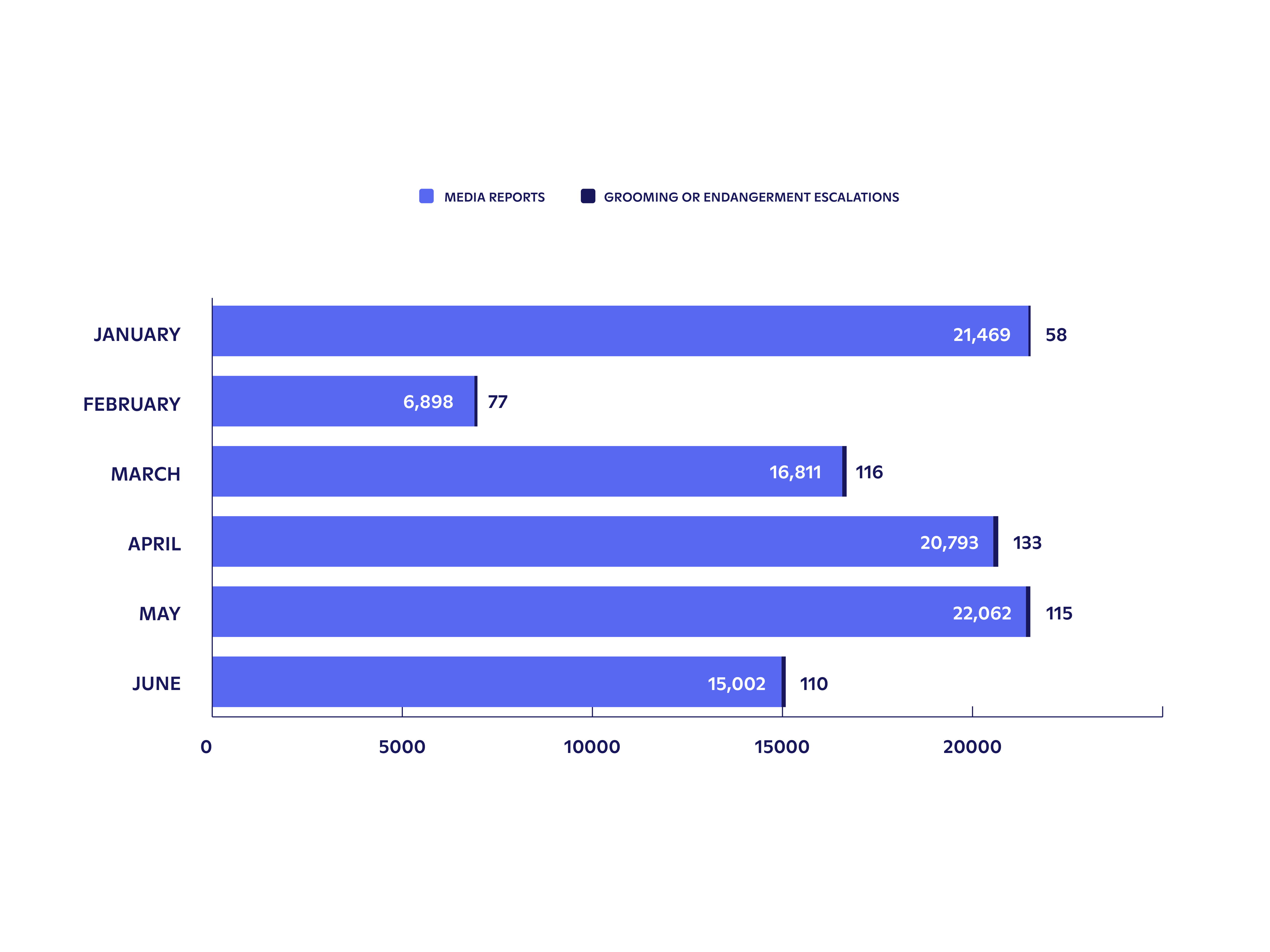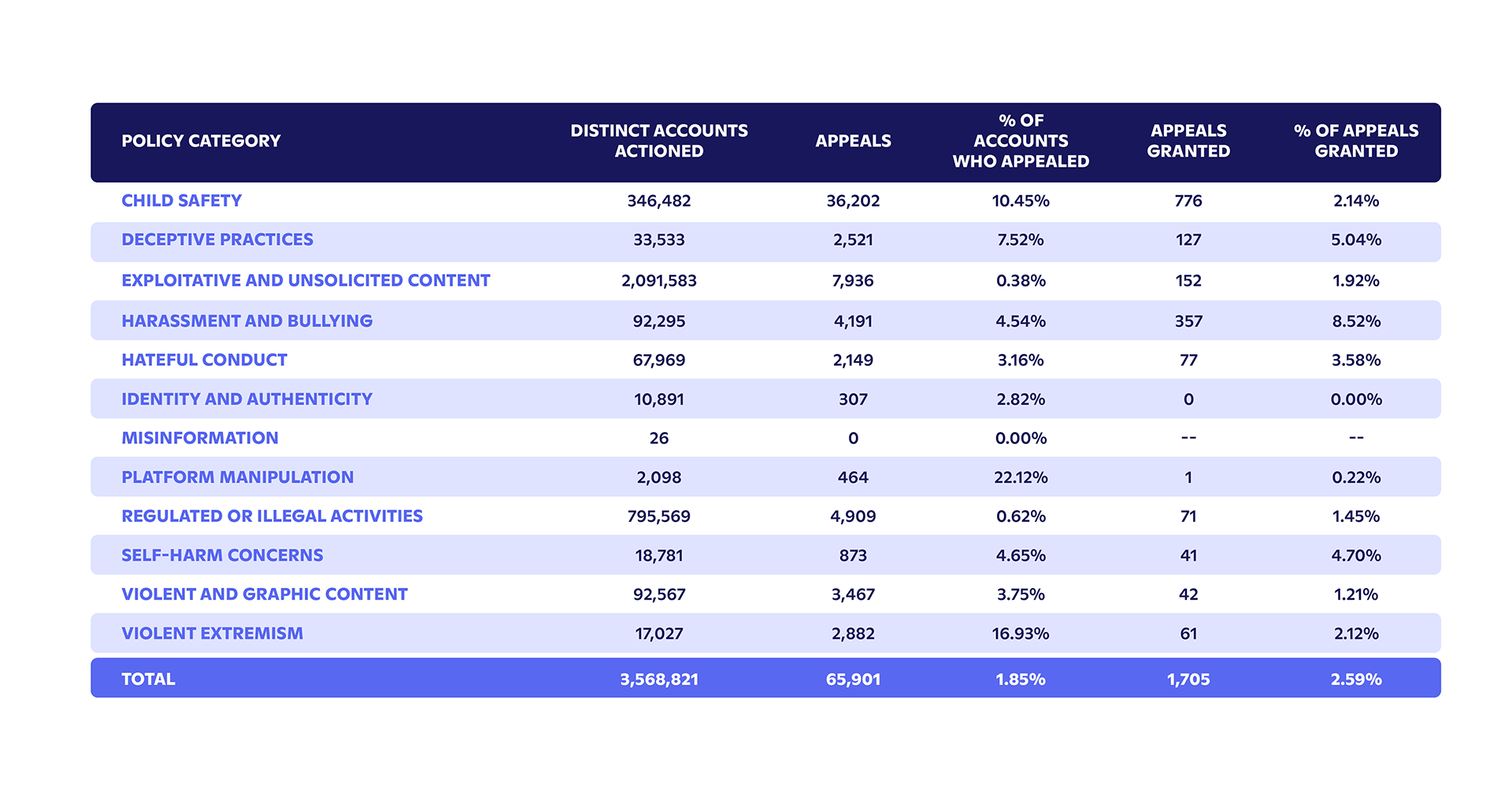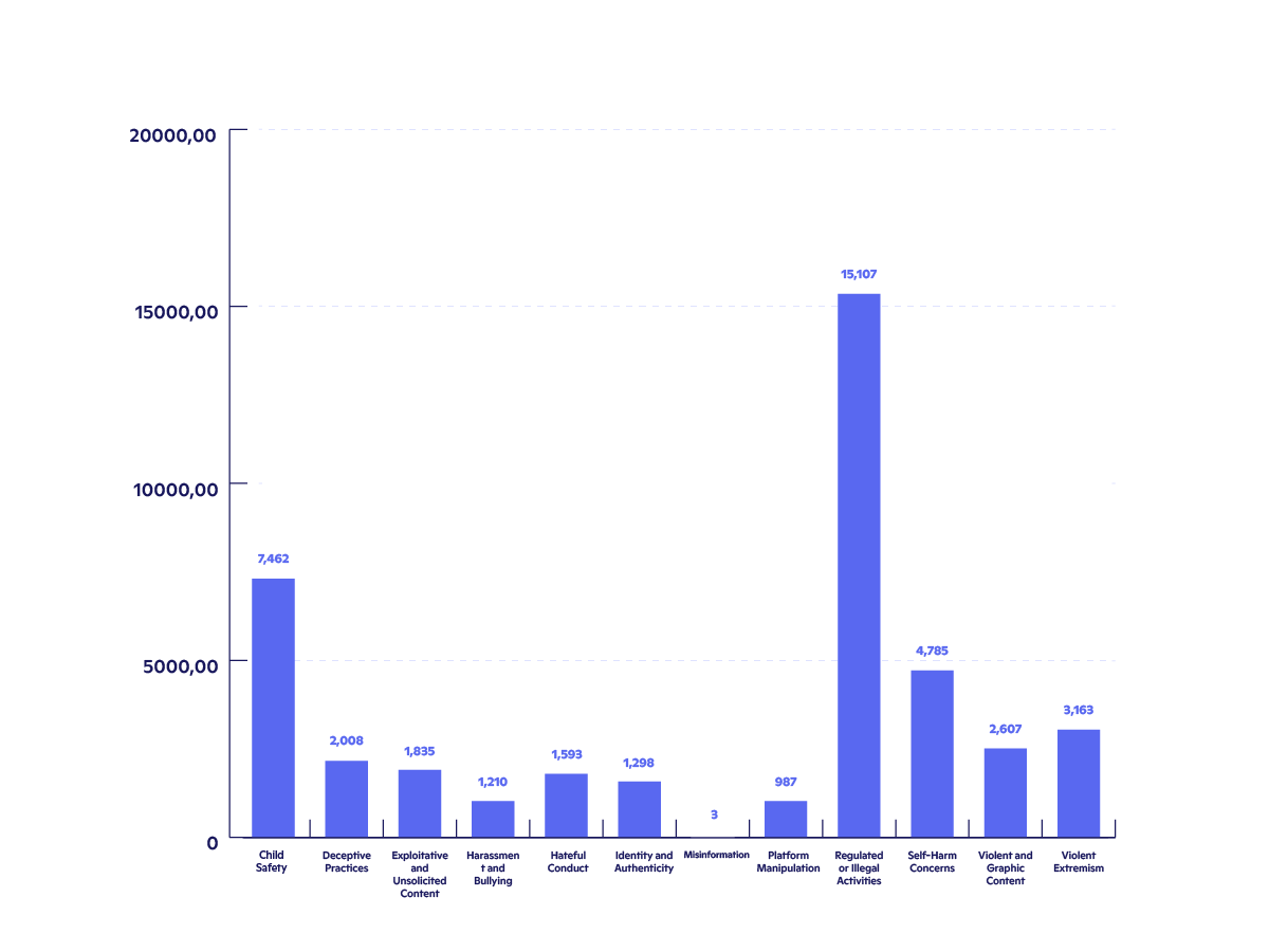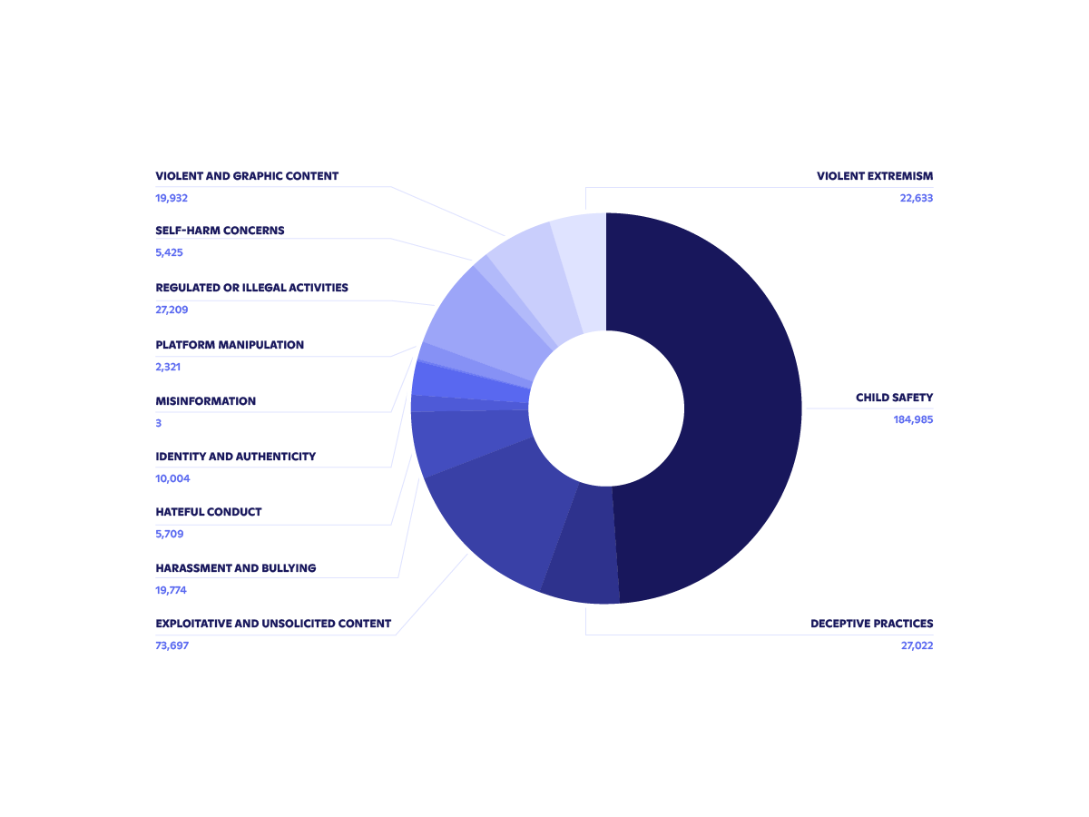 Discord took action on 18,781 distinct accounts for Self-Harm Concerns during this period, including disabling 5,425 accounts and removing 4,785 servers.