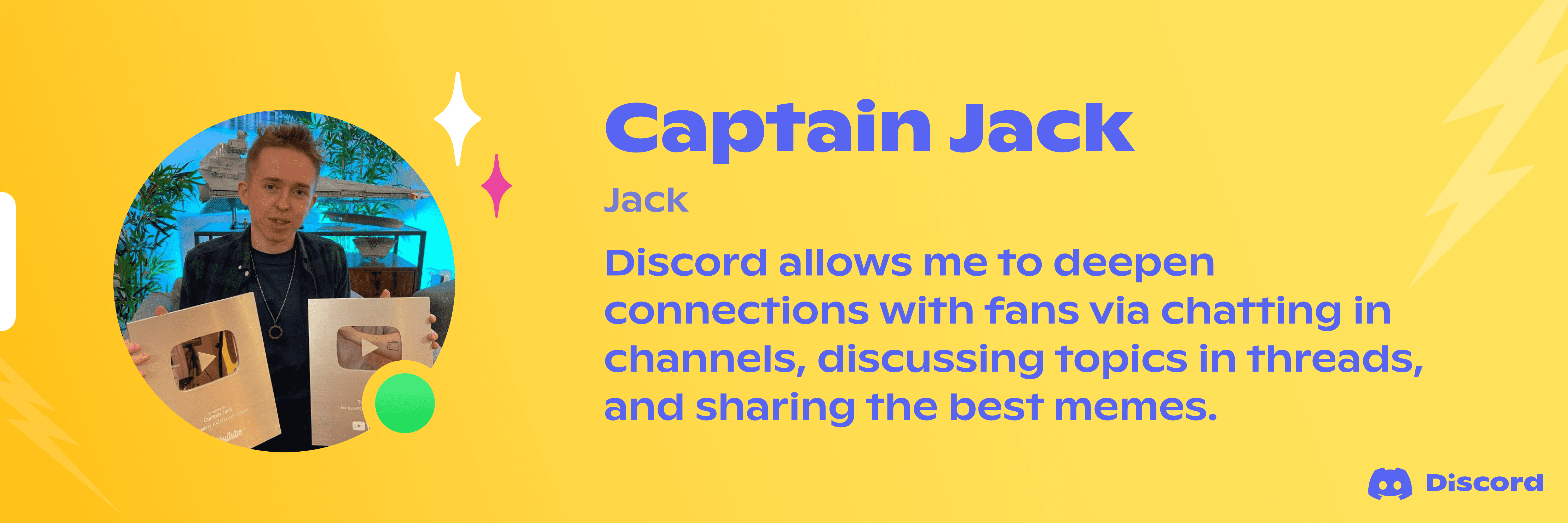 For fellow creators considering Discord, Jack’s advice is simple: start now. “There is no time like the present. Creating a Discord community for yourself, your content and your community creates value. This can be fantastic for yourself as a content creator, but also for the community members to engage with like-minded individuals and express themselves.”