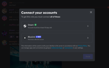 We support several third-party services natively within Discord (Facebook, Twitter, Steam, etc). We’re also opening up Connections to third-party app developers, which will allow anyone to create a Connection for members to add (and admins to check) when granting Linked Roles. If you’re interested in adding connection capabilities to an existing app or a new app, learn more in the Role Connections API doc here and our How-To-Guide here.