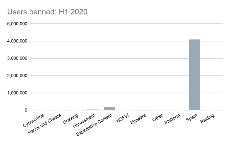 A major success we had in the first half of 2020 was the complete dismantling of a network of servers sharing nonconsensual pornography. Our proactive team identified an entire network of 700 servers and systematically removed the content and communities involved. When those users attempted to return to Discord, they were again identified and removed. Nonconsensual pornography has no place on our platform, and we’ll continue to take swift action against these communities and their members.