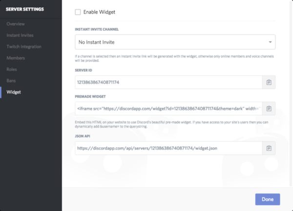 You can find the code needed to hook this up on your website in the Widget tab in your Server Settings. Make sure to check the Enable Widget box!