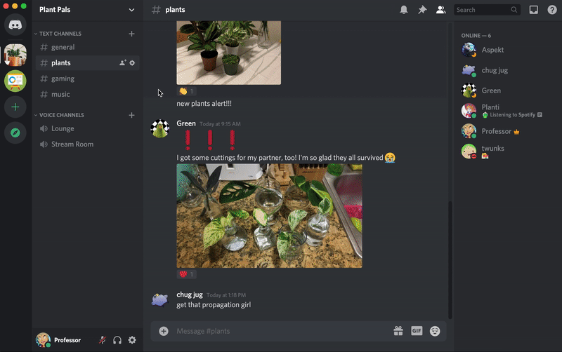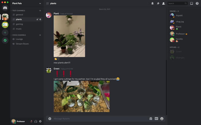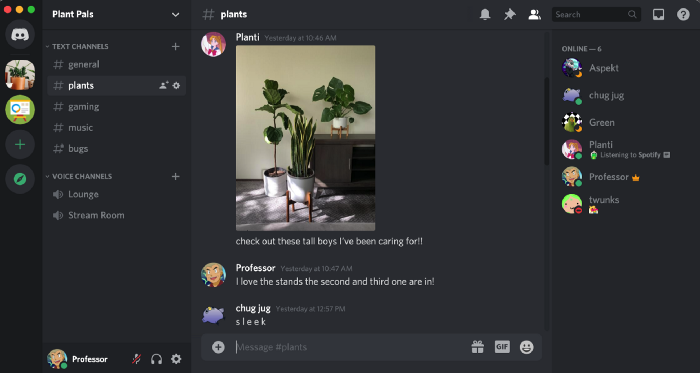 Next, the most important part of any server or group: The name. No matter what our friend group chats about, we all have one thing in common: we love houseplants. Let’s call it… “Plant Pals.”