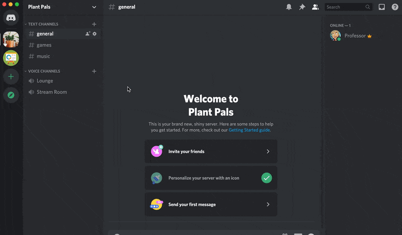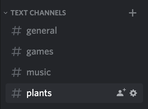 When we made our “Plant Pals” server, the “Friends” template we used included channels called #general, #gaming, and #music. Since we’re big into houseplants, our friends want a place where we can focus on talking about and sharing tips on taking care of our plants. So, let’s make a channel for that!