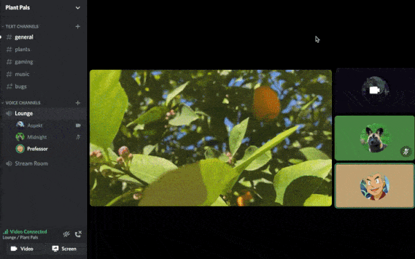 Voice channels also allow you to use your device’s camera to see your friends for a video chat. You can also share your device’s screen to show your friends how good you got on that one game, or how complex your plant watering schedule is.